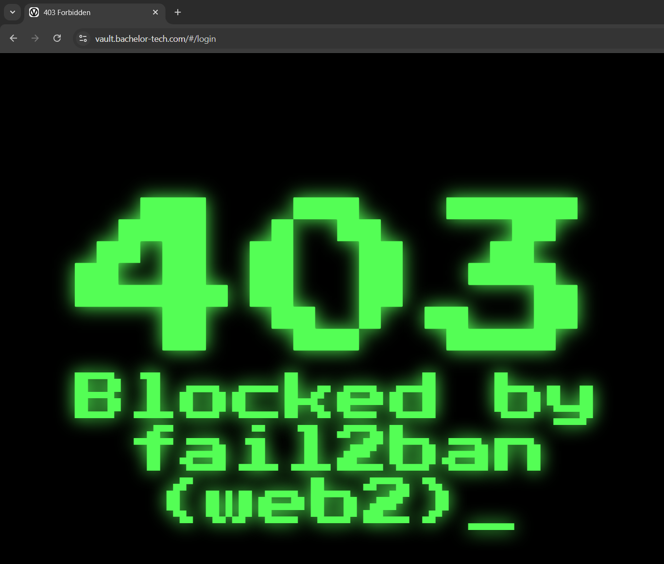 <div class="txt"> Blocked by fail2ban (SERVER_ID)<span class="blink">_</span> </div>