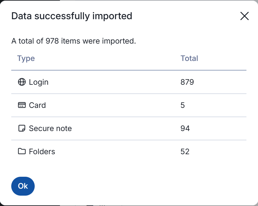 💡Moving an Organization (or a Family org) is done in the same way as the personal vault, you just need to export them and import them separately. Collections are re-created automatically during the import, you do not need to create them before the import.