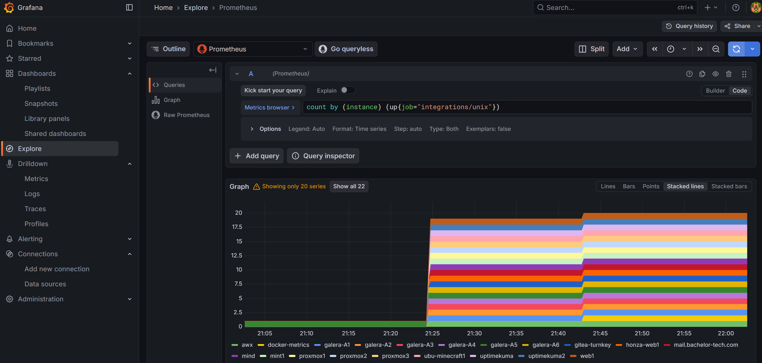Go to Explore → select Prometheus → run this query (use the ‘code’ view to just copy paste the command below):
