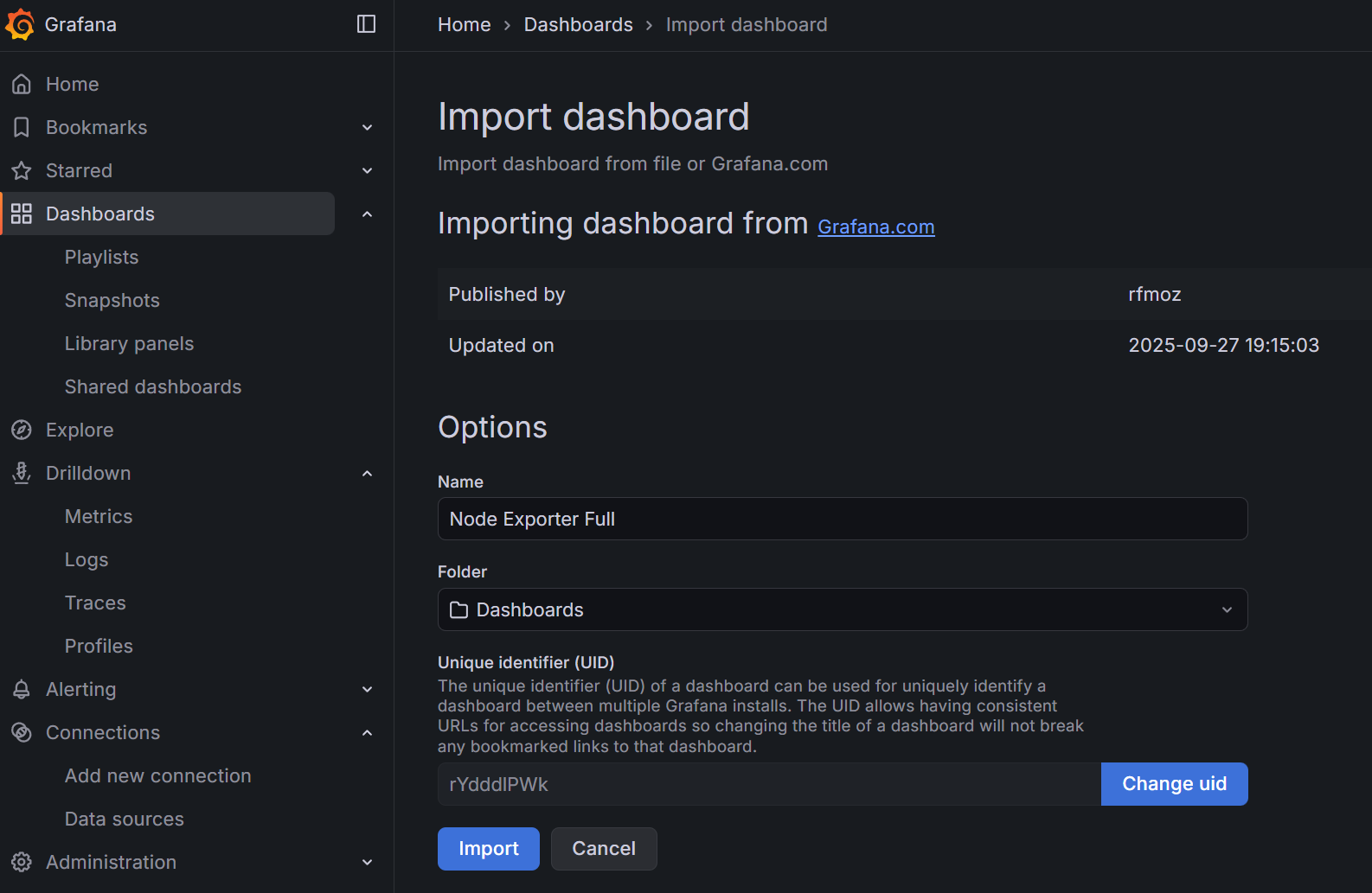 Import a custom dashboard