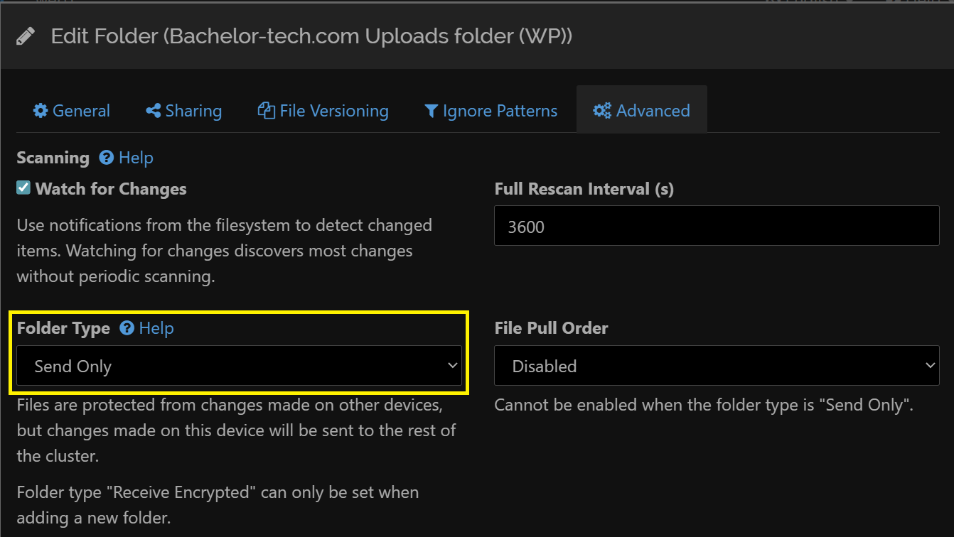 web2has the newest version and deletes everything away in the respective folder onweb1(you would achieve that by just creating an empty file called.stfolderin the folder to sync, which makes it feel quite fragile). So here is the safe method: